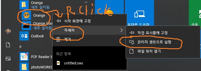 근본적으로 이 문제를 해결하려면 Orange3의 설치 위치를 Program Files가 아닌 다른 곳(예: c:\orange)에 설치하도록 하면 될 것으로 보이네요.